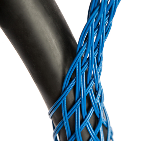 Entwickelt speziell (aber nicht ausschließlich)für den Einsatz in Wind-Energieanlagen und hier insbesondere im Bereich der Loop-Kabel. Zugentlastende Aufhängung der beweglichen Kabel und Leitungen mit höchstmöglichem Schutzfaktor. Bedingt durch die spezielle Ummantelung schützt dieser Strumpf optimal gegen Durchscheuern des Kabelmantels und verhindert auch weitestgehend das Verhaken der Strumpfenden (bei sachgemäßer Montage) untereinander. Der spezielle Kunststoff der Ummantelung trägt ebenso zum Brandschutz im Bereich der Kabelaufhängungen bei. Das hochflexible, handgeflochtene Geflecht ist mit einer, ebenso ummantelten, flexiblen Seilöse versehen. Somit ist er leicht und platzsparend montierbar.